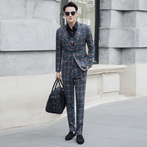 Why Choose Men's Checked Suit Three Pieces One Button Christmas Casual Tuxedo Jacket Vest Pants?