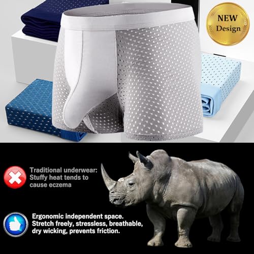 Men's Bulge Enhancing Mesh Trunks Smooth Boxer Briefs Elephant Nose Underwear with Separate Pouch