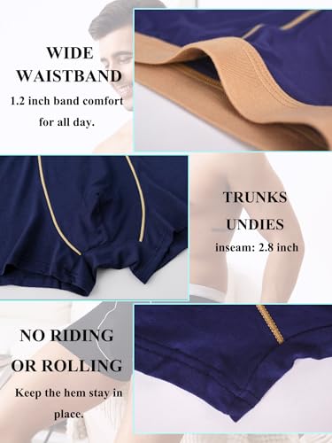 Fabric type: 95%viscose, 5%elastaneCare instructions: Hand Wash OnlyOrigin: ImportedEnhanced Viscose Fabric: Upgrade your underwear game with our men's trunk underwear made from soft viscose fiber, offering superior breathability and elasticity compared to cotton. Experience the silky touch of men's viscose underwear pack.Soft Waistband: Enjoy consistent, plush with our 1.2-inch wide soft fabric-covered waistband, designed for high elasticity and durability. Say goodbye to discomfort with our soft, snug waistband.No-Fly Pouch: Our men's boxer briefs feature a contoured 3D pouch to provide an ultimate comfortable feeling without any stickiness. The flatlock seams ensure a smooth feel in sensitive areas, making adjustments a thing of the past.Short Legs & 1 Piece Back: Designed with short legs and a 1 piece cut at the back, our men pouch underwear have no wedgies in the middle, eliminating awkward adjustments. Stay confident and comfortable with our seamless mens briefs underwear.Stay Put Designer: Our men's short trunk briefs are engineered to stay in place all day long, meaning no more readjusting throughout the day. Embrace freedom of movement and comfortable feeling with our no ride-up cut. Perfect for everyday use. first-class materials and excellent craftsmanship ensure long-lasting durability.