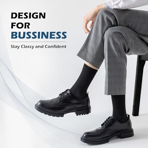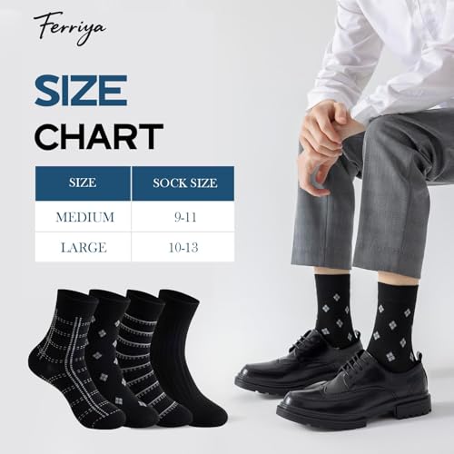 Fabric type: 98% Polyester, 2% SpandexCare instructions: Machine WashOrigin: ImportedPattern: CheckeredSOFT STAY-UP CUFFS:Crafted with comfort-top cuffs that gently wrap your calves without slipping or squeezing, these men's dress socks stay securely in place all day. Ideal for office wear or long hours on your feetSEAMLESS TOE COMFORT:Designed with a smooth toe seam, our black dress socks for men reduce friction and eliminate irritation, offering superior comfort with dress shoes, oxfords, or bootsREINFORCED FOR DURABILITY:Extra support in the heel and toe areas provides added durability and protection in high-wear zones. Our men's patterned socks for daily wear, business travel, or special eventsMOISTURE WICKING & ODOR CONTROL:Made with breathable cotton blend and sweat-wicking fibers, these men dress socks keep your feet dry and odor-free throughout your day. Stay fresh from morning to nightEVERYDAY FIT IN M/L SIZES:Crafted from 98% Polyester and 2% Spandex, this 4-pair pack of men's black socks is available in sizes M (fits US sock size 9-11) and L (fits US sock size 10-13), making it a wardrobe essential Perfect for everyday use. premium materials and excellent craftsmanship ensure long-lasting durability.