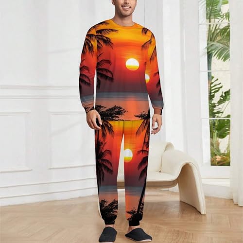 Beach Sunset Palm Tree Landscape Men’s Pajama Set Long Sleeve Top And Pants Loungewear Sleepwear Pjs Nightwear