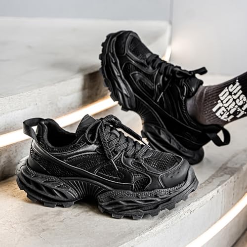 Mens Fashionable Chunky Platform Sneakers lace up Casual Non Slip Shoes Suitable for Walking Driving Work and Daily use