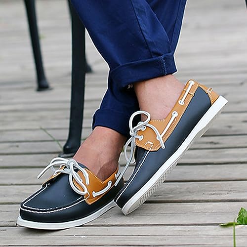 Men's Leather Fashion 2 Eye Boat Shoes,Lightweight Comfort Non-Slip Casual Driving Walking Moccasin Wendy Penny Loafers