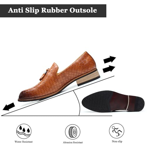 More information about Men's Woven Leather Tassel Loafers Fashion Lightweight Slip On Low Block Heel Smoking Slipper Weeding Party Prom Dress Shoes for Men