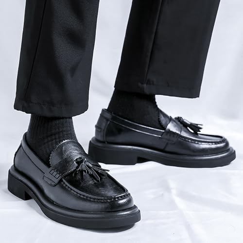 Men's Leather Tassel Loafers Shoes - Platform Penny Slip-On Dress Shoes with Round Toe, Non-Slip Sole for Business Office Work