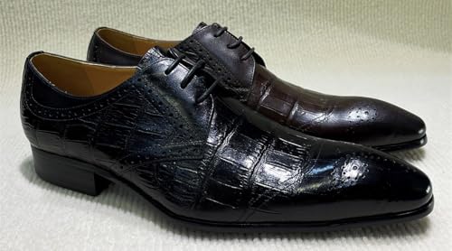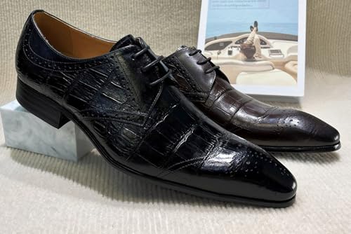 Santimon Men’s Crocodile Leather Formal Dress Shoes – Fashion Luxury Lace-Up Shoes for Business, Prom Weddings, Special Occasions
