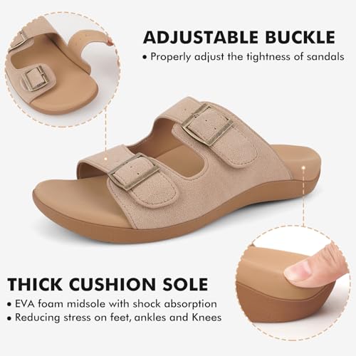• ADJUSTABLE METAL BUCKLE STRAP DESIGN: V.Step orthopedic slide sandals come with two adjustable metal buckle straps, allowing for a customized fit. Whether you have narrow or wide feet, these sandals ensure a ideal, personalized fit for every foot types