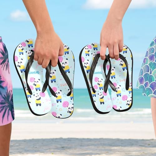 Burbuja Pandas Holding Lollipops Flip Flops for Women Men, Soft Thong Sandals Rubber Slippers for Pool Beach Essentials 7