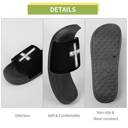 Jesus Cross Believe Printed Unisex Shower Shoes House Slippers Non-Slip Indoor Bathroom Shoes for Pool Beach 37 (235mm) 6