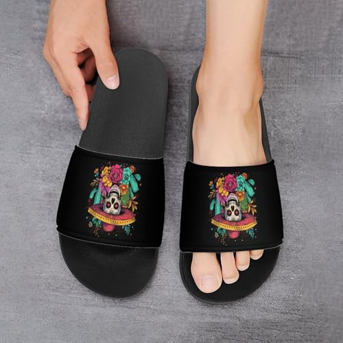 HOT ! Psychedelic Mexican Skull Flower Cactus Unisex Shower Shoes House Slippers Non-Slip Indoor Bathroom Shoes for Pool Beach 39 (245mm)