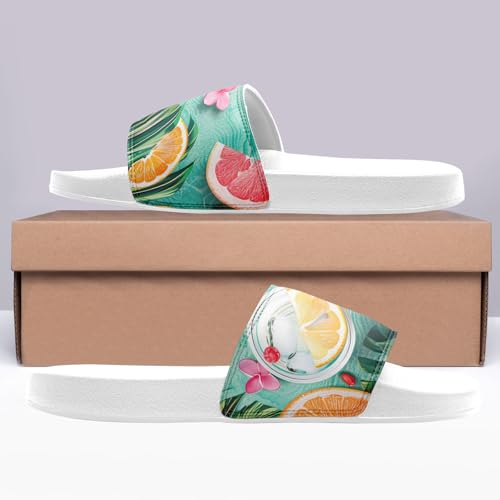 • Tropical Style for Summer Vibes: Featuring vibrant floral, pineapple, palm leaf, or Aloha-inspired prints, these summer slides bring a laid-back vacation look to your everyday footwear