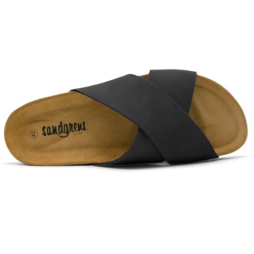 More information about Sandgrens Handmade Unisex Cork Slides | European Top Grain Leather Sandals with Soft Suede Footbed and EVA Rubber Sole | Soria
