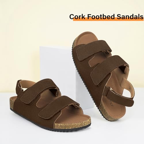 Mens Womens Cork Footbed Sandals Suede Leather Flat Sandals Arch Support Orthotic Summer Slip on Open Toe Outdoor Slide Shoes with Adjustable Double Strap & Back Strap 5