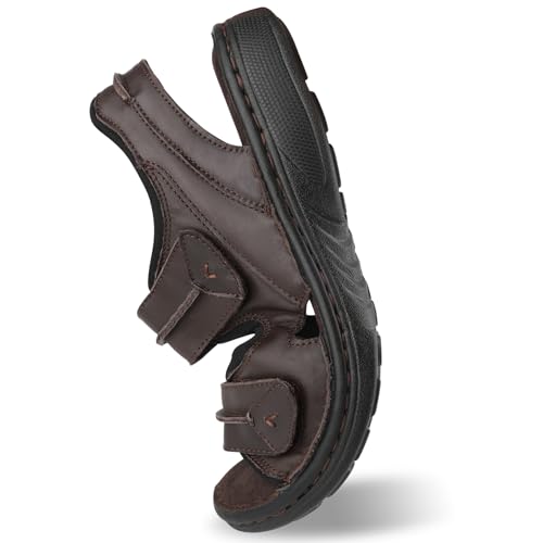 HOT ! riemot Men's Sandals Leather Casual Open Toe Beach Sandal Summer Outdoor Walking Hiking Fisherman Sandals with Adjustable Strap