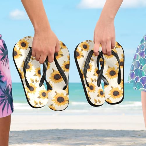 HOT ! Pattern Sunflower Women's Flip Flop Sandal, Casual Summer Sandals, Mens Flip Flops for Beach Outdoor XS