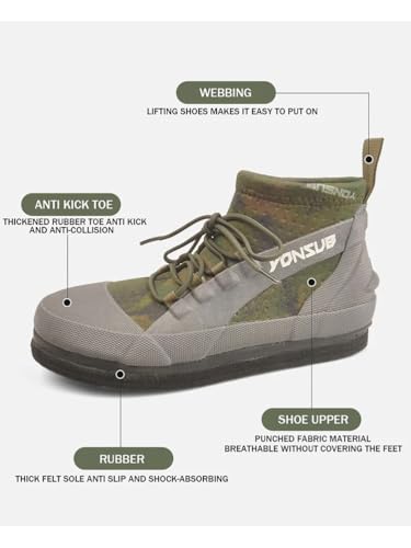 • Anti-Slip Multi-Layer Sole : Built with a durable felt + rubber sole enhanced by steel studs, these fishing boots offer superior traction on rocks, reefs, and wet terrain to prevent slipping