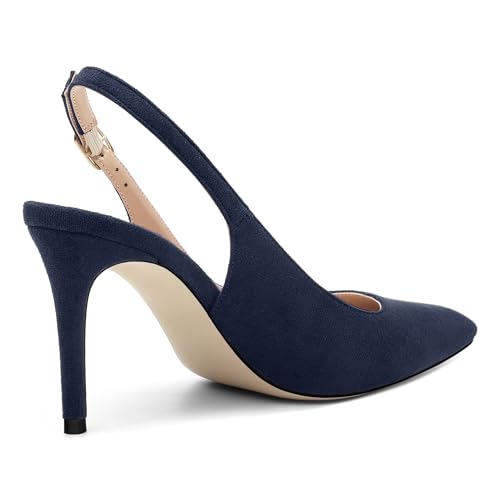 Women's Slingback Suede Pointed Toe Wedding Dress Buckle Comfort Stiletto High Heels Pumps Shoes 3.35 Inch 3