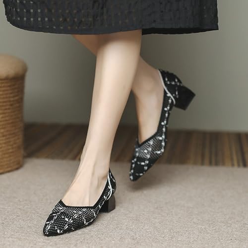 SWDZM Chunky Heels for Women Knit Ballet Shoes Pointed Toe Low Heel Mesh Comfortable Block Pumps Dress Shoes 6