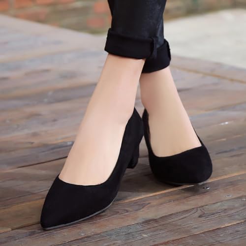 Asterisco Women Block Heel Pumps Mid Heel Shoes Pointed Toe Slip On Elegant Heels, Size 3-15.5 6