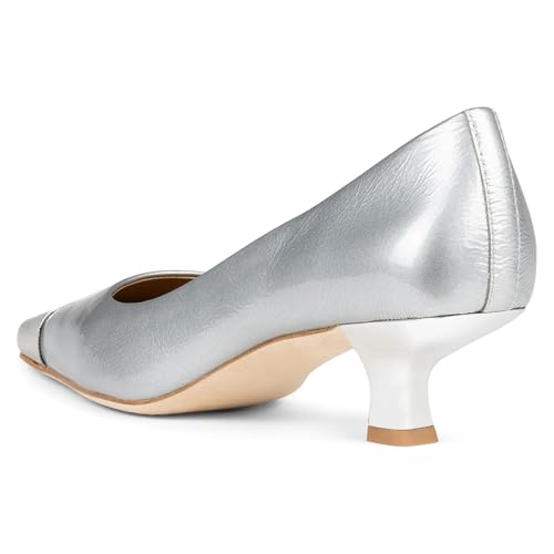 FSJ Women Comfort Cap Toe Kitten Low Heel Two-Tone Dress Pumps Slip On Square Closed Toe Casual Office Work Event Shoes Size 4-16 US 1