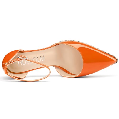 HDEUOLM Womens Mid Kitten Heel Pointed Toe Beaded Pumps Ankle Strap Two-Piece Prom Dress Patent Leather Summer 2.4 Inches Heels 4