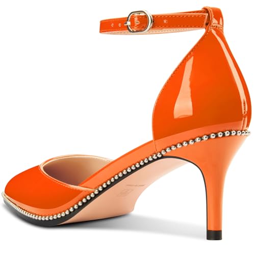 More information about HDEUOLM Womens Mid Kitten Heel Pointed Toe Beaded Pumps Ankle Strap Two-Piece Prom Dress Patent Leather Summer 2.4 Inches Heels