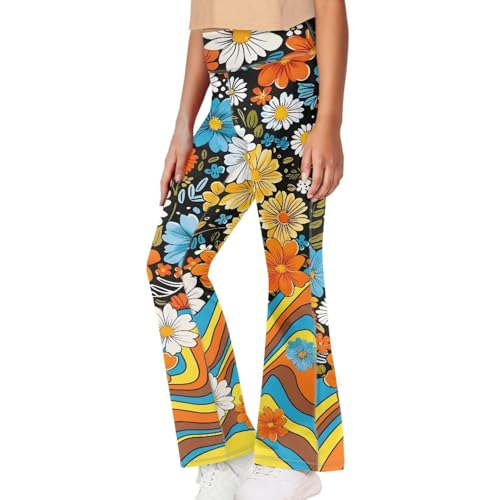 70s Girls Bell Bottom Floral Print Stretch Hippie Pants High Waist Flare Pants 5-14 Year 2