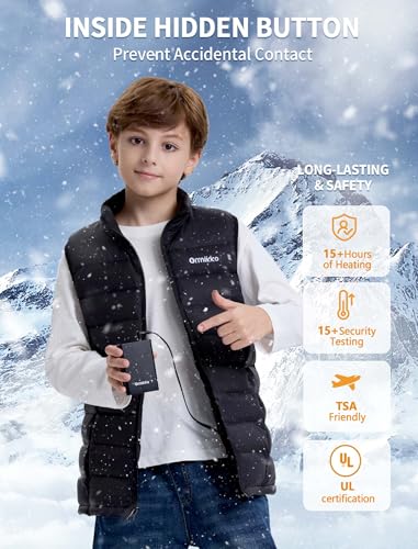 • 【Superior Fabric】: GRS approved fiber is exceptionally soft and delivers unparalleled resistance to heat loss while remaining breathable in any condition. The heated vest is filled by the feathery-cotton, it's fluffy and light, excellent windproof and warm. Comfort level has reached a new level, ensuring that children's free play is not restricted