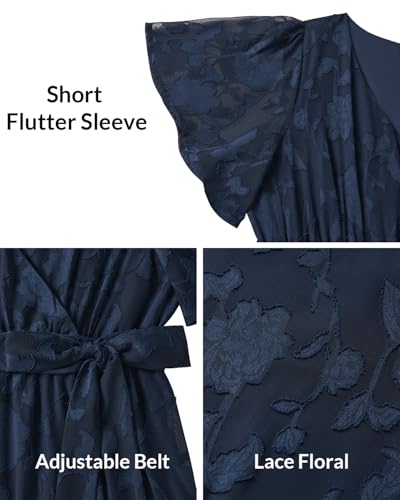 • 【Features】 Wrap V-neck, short flutter sleeves, floral lace, high waist, A-line silhouette, maxi length, full lining, and adjustable belt for a flattering fit-and-flare look.