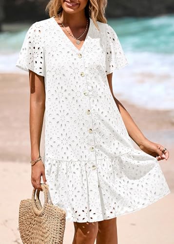 • Eyelet Dress For Women: This Women’s Babydoll Min Dress Features a Unique Eyelet Hollow-Out Embroidered Lace Design, Come With Functional Buttons At The Front, A Flattering V-Neck, And a Classic a-Line Silhouette That Elegantly Flatters Your Figure, Making It The Perfect Piece For Summer Sundresses. Enjoy Effortless Style On Summer Days Or Beach Vacations