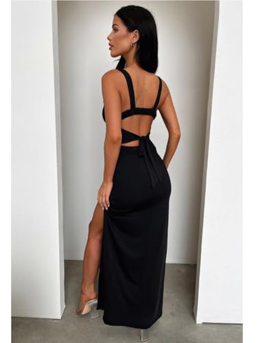 • Fabric: Fashionable backless tank top long dresses, made of polyester and spandex, good elasticity, high quality, good breathability, comfortable, soft, lightweight, skin friendly, making you charming, elegant, slim, and fashionable. This backless long dress is perfect for parties or formal events.