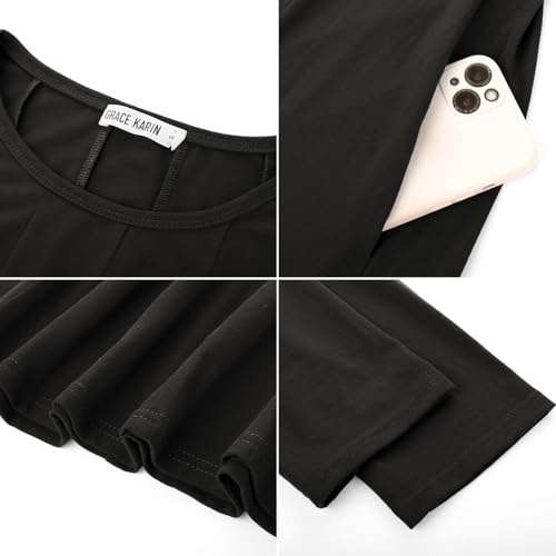 GRACE KARIN Womens 2025 Trendy Dresses Crew Neck 3/4 Sleeve A Line Loose Casual Midi Dress with Pockets 3