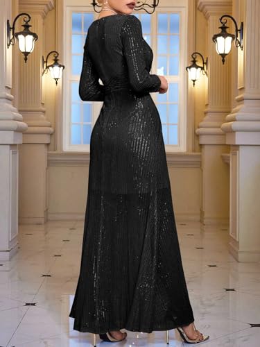 meilun Long Sleeve Sequin Dress for Women Formal Gowns Sparkly V Neck Maxi Dress 3