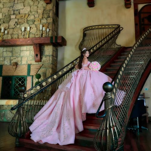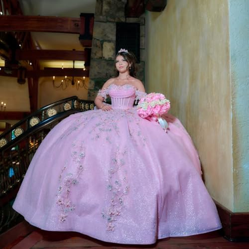 • Feature: lace appliques quinceanera dresses with train; floral beaded quinceanera dresses with detachable bow; off shoulder quince dress; glitter beaded ball gown; sparkly tulle sweet 16 dresses for women; luxury birthday party gown