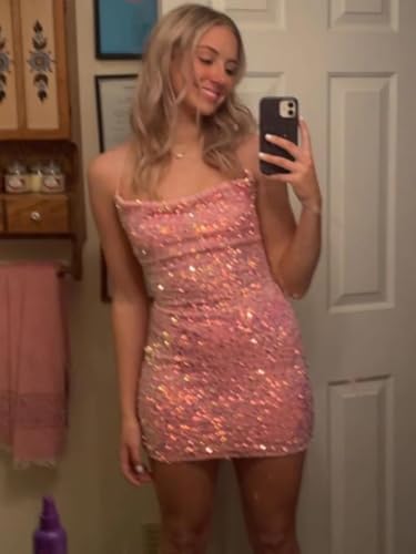 Women's Sequin Homecoming Dresses for Teens Sparkly Corset Spaghetti Strap Tight Short Prom Dress 5