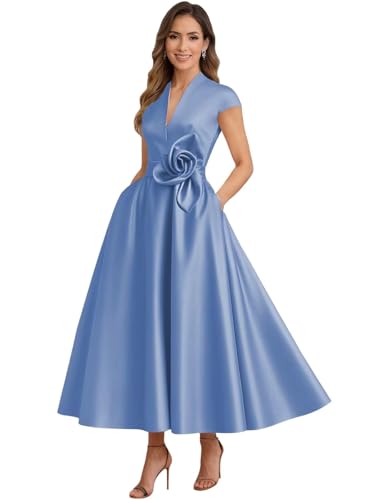 • Features: Tea length satin mother of the bride dresses for women 2025 cap sleeves pleated formal wedding guest dress fall, petite mother of the groom dress for wedding, mother of the bride dresses for seniors, plus size, a-line, v neck evening gowns for women formal dresse, plus size, zipper, built-in bra