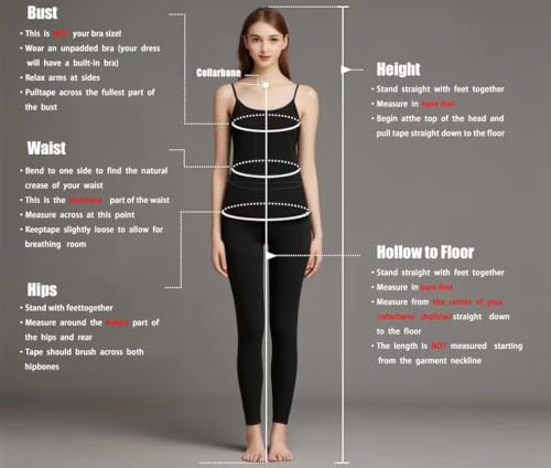 • SIZE :We accept free customization service, You can refer to the size chart in the product image on the left and provide us with measurements of chest circumference, waist circumference, hip circumference, and waist circumference when placing an order,The dress will be made fit you perfect.PLEASE NOT AMAZON SIZE CHART,And contact us via email within 12 hours after placing the order.
