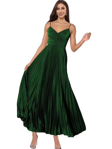 Satin Pleated Bridesmaid Dresses Spaghetti Straps Long Formal Gown for Women 1