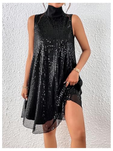 More information about Floerns Women's Contrast Sequin Sleeveless Tank Dress High Neck Bow Shiny Party Dress