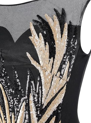 ANGEL FASHIONS Women's Sheer Gold Sequined Black Splicing Evening Dress 4