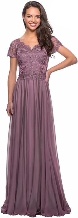 • 🌸【Feature】 High quality Chiffon material, fully lined in polyester and skin-friendly, Built-in Bra, Floor Length, V neck, A-line style, Short Sleevs, Ruffles, Plus size, Floor Length, Cap Sleeves, Lace appliques, Petite, Pleated, Empire waist, Lace up back Closure,100% hand made. Mother of the Bride Dresses Chiffon Wedding Guest Dresses for Women Lace Appliques Formal Evening Gowns Short Sleeves Mother of the Groom Dresses