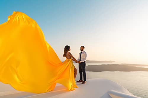 Yellow Long Flying Dress for Photoshoot Maternity Photography Prewedding Vacation 5