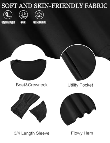 • ❤SOFT FABRICS:This tshirt dress is made of 60%Polyester+35%Rayon+5%Spandex,The 3/4 sleeve sun dress is skin-friendly fabric which is super soft ,lightweight, breathable and comfy to wear.
