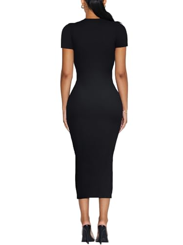 Women's Long Bodycon Dress - Summer Casual Short Sleeve Midi Club Party Fitted Tight Dresses 1
