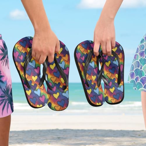 Flip Flop Sandals Colored Hearts Print for Women Men Beach Outdoor XS 5