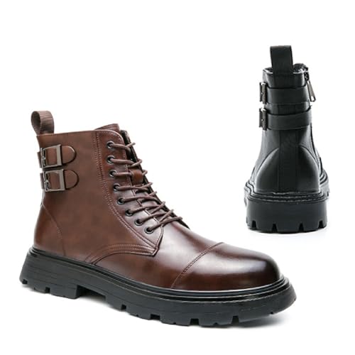Men's Leather Lace-Up Platform Zipper Combat Botas Fashion Round Head Buckle Strap Lug Bottom Waterproof Chukka Booties Comfort Non-Slip High Top Casual Motorcycle Ankle Boots 6