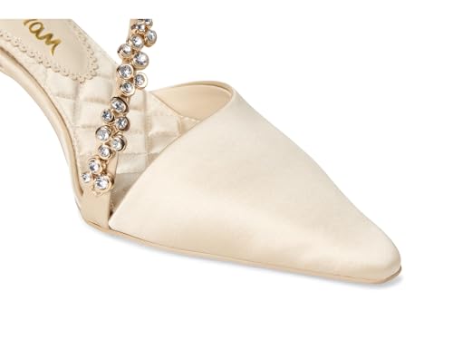 • Introducing the Bonnie by Sam Edelman: a chic slingback kitten heel designed for effortless elegance. Featuring a sleek pointed toe and delicate pearl-embellished strap, this shoe brings a touch of sophistication to any outfit.