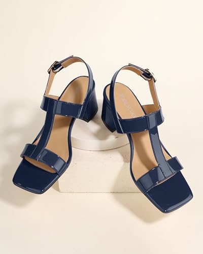 MODENCOCO Women's Strappy Heeled Sandals Chunky 2 Inch Slingback Square Open Toe Heels Comfortable Casual Summer Dress Shoes with Buckle 5