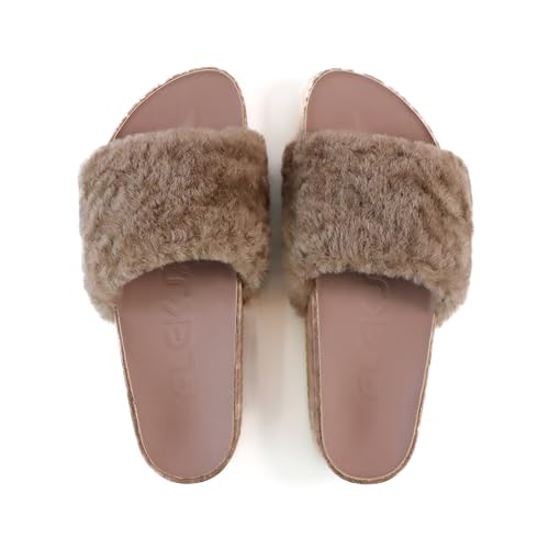 HOT ! Fleks San Ysidro Women's Shearling Slides, Platform Sandals with Arch Support, Comfort Footwear, Natural Sheepskin Upper