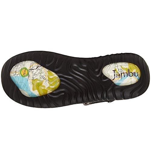 • Metallic T-strap with hook-and-loop closure opens on both sides for easy on/off